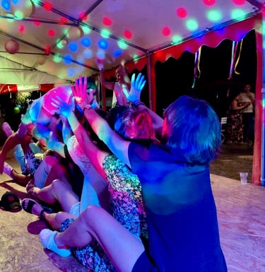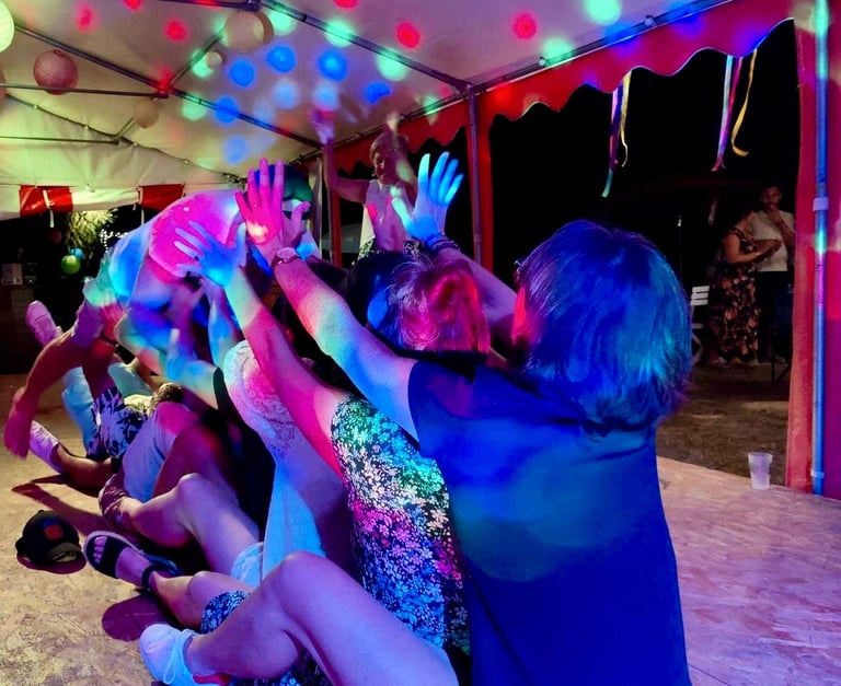 • Éclairage : guirlandes guinguette, projecteurs d'ambiance, boule à facettes…